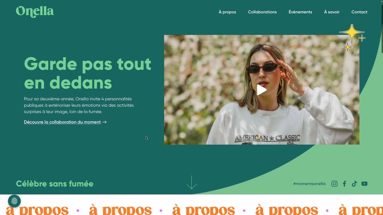 Nous avons été approchés par le Conseil québécois sur le tabac et la santé pour développer le site web d'Onella, une initiative qui célèbre la vie sans fumée chez les jeunes. Ce fut donc un honneur de pouvoir contribuer à une cause si noble.